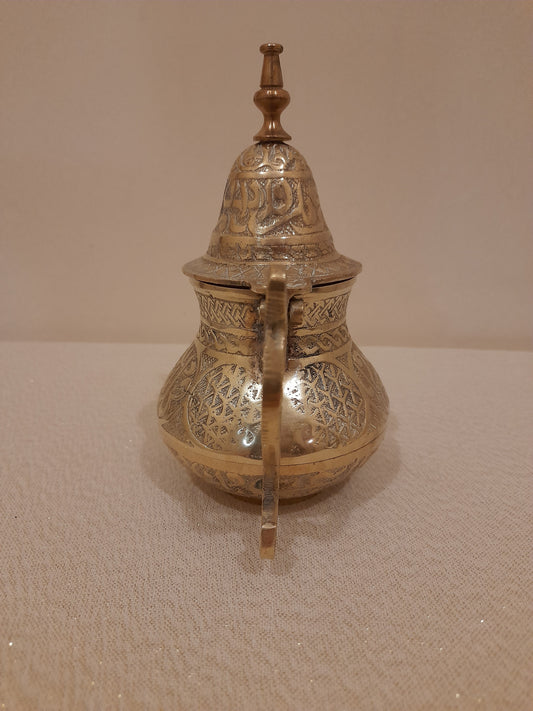 Middle Eastern/Moroccan Brass Teapot Etched Design Hinged Lid