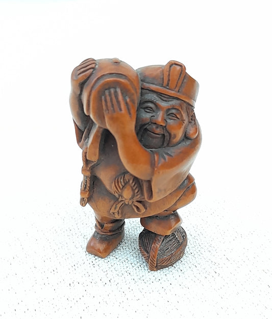 Hand Carved Japanese Netsuke Sculpture Old Musician