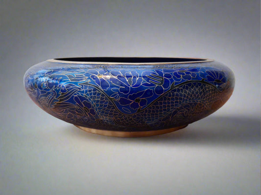 Stunning Large Chinese Cloisonné Dragon Bowl - Blue