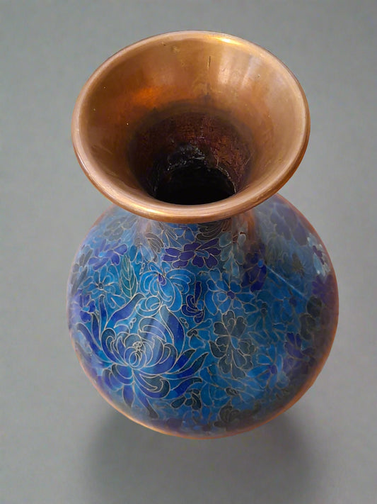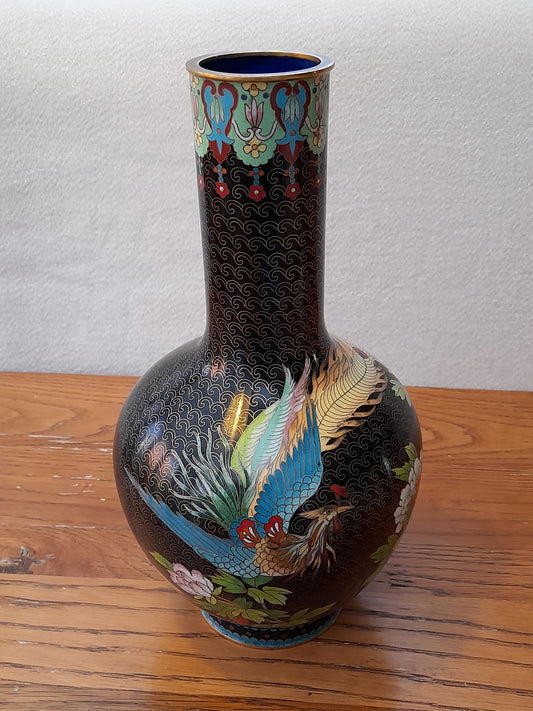 Stunning Large Chinese Cloisonné Vase - Black background with Bird of Paradise