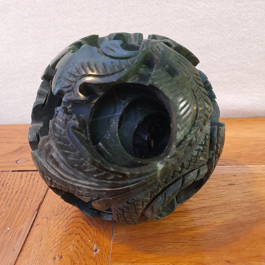 STUNNING ANTIQUE CHINESE HAND CARVED 6 LAYER HARDSTONE JADE COLOURED PUZZLE BALL